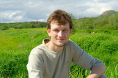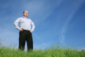 mężczyzna w średnim wieku uśmiechający się w ogrodzie