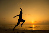 sylwetka facet Joga na zachód słońca plaża faliste