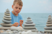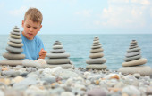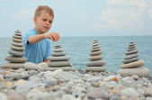 dziewczynka kapelusz jest budowlanych z kamienia żwirowa