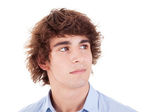 uśmiechnięty chłopiec nastolatek z morza, patrząc z daleka