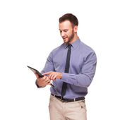 młody przystojny mężczyzna uśmiecha się odizolowany na biały