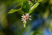 Kwiaty pekińskie, pąki kwiatowe i liście pekińskie (Caryocar brasiliense) w zbliżeniu i w sposób selektywny.