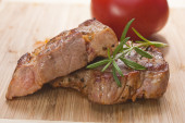 żeberka wieprzowe, ziemniaki i pomidory świeże makro. Poziome