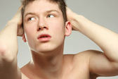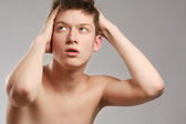 Szalony człowiek zdenerwowany, eksploduje i sfrustrowany. Człowiek zestresowany i zły