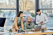 Zdjęcie "Trzy stylowe biznesmenki angażują się w dynamiczną dyskusję podczas wspólnej pracy w biurze." może być wykorzystywane do celów osobistych i komercyjnych zgodnie z warunkami zakupionej licencji Royalty-free. Obraz jest dostępny do pobrania w jakości wysokiej rozdzielczości do 5760x3840.