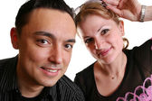 chłopiec w czarny kapelusz obejmuje dziewczyna w cyjan bluzka na biały