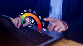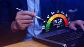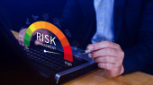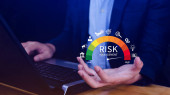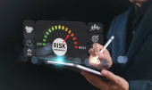 Ryzyko, przedsiębiorcy dotykają wirtualnego wskaźnika poziomu ryzyka, od niskiej do wysokiej, który jest wykorzystywany do analizy finansowej i biznesowej, oceny ryzyka finansowego, zmniejszenia ryzyka projektu i strategii inwestycyjnej.