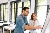 Zdjęcie "Dwóch młodych profesjonalistów aktywnie angażuje się z laptopem podczas dyskusji nad swoim projektem." może być wykorzystywane do celów osobistych i komercyjnych zgodnie z warunkami zakupionej licencji Royalty-free. Obraz jest dostępny do pobrania w jakości wysokiej rozdzielczości do 5760x3840.