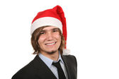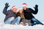 para na tle błękitnego nieba zimą w santa claus kapelusze z iskra