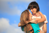 chłopak z dziewczyną twarzą w twarz z zamkniętymi oczami