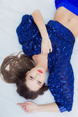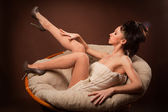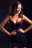 portret seksowny blond dziewczyna w elegancka bielizna czarny