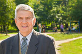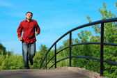 portret starszy mężczyzna w czarnym kapeluszu w lesie jesienią na drewniany most