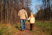 dziadek z wnuczka stoją w parku w jesieni i spojrzeć w górę