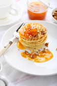 Zdjęcie "naleśniki z dżemem morelowym" może być wykorzystywane do celów osobistych i komercyjnych zgodnie z warunkami zakupionej licencji Royalty-free. Obraz jest dostępny do pobrania w jakości wysokiej rozdzielczości do 5760x3840.