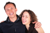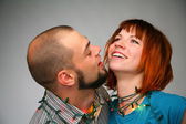 dziewczyna z Rude włosy i kłamstwo facet łeb w łeb