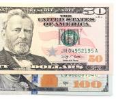 Stos strzał USA pięćdziesiąt 50 dolarowy banknot, bliska e dotacji
