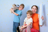 Zdjęcie "matka z dziećmi sprawia, że pokój remonty" może być wykorzystywane do celów osobistych i komercyjnych zgodnie z warunkami zakupionej licencji Royalty-free. Obraz jest dostępny do pobrania w jakości wysokiej rozdzielczości do 5760x3840.