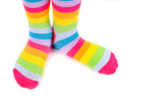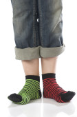 dwie stopy w skarpetkach wielobarwne