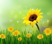 Zdjęcie "Słoneczniki tło ze słonecznika i liści. Wektor" może być wykorzystywane do celów osobistych i komercyjnych zgodnie z warunkami zakupionej licencji Royalty-free. Obraz jest dostępny do pobrania w jakości wysokiej rozdzielczości do 5760x3840.