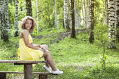 Zdjęcie "Młoda blondynka siedzi pod drzewem w drewnie" może być wykorzystywane do celów osobistych i komercyjnych zgodnie z warunkami zakupionej licencji Royalty-free. Obraz jest dostępny do pobrania w jakości wysokiej rozdzielczości do 5760x3840.