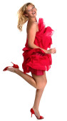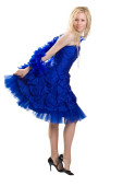 blondynka w niebieska sukienka