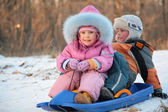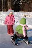 dziecko ściąga innego na Skutery śnieżne z powrotem