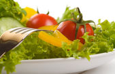 sałatką ze świeżych warzyw w misce na stole z bliska