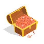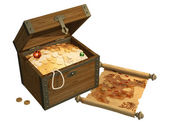 Opened treasure chest isolated on white background