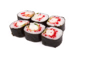 Maki sushi rolki z muszelki na białym tle na białym tle