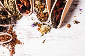 przyprawy w drewnianą łyżką