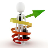 3D człowieka i strzałki, biznes koncepcja na białym tle