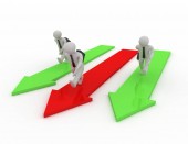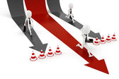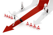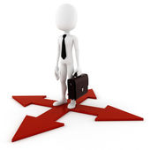 3D człowieka i strzałki, biznes koncepcja na białym tle
