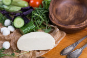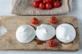 kule różnej wielkości mozzarella z pomidorami cherry, chleb i