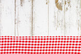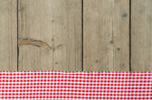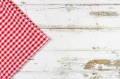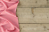 Czerwony obrus składany na drewnianym stole