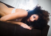 dziewczyna zmysłowo pozuje w rozkładaną noszenie bielizny
