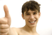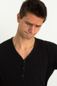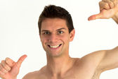 attrective młody człowiek robi kciuk i innych kciuk w dół