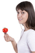 Bardzo zdrowe dziewczyny z czerwonym smaczny warzywo