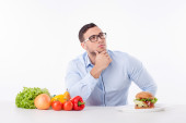 Zdjęcie "Bardzo młoda kobieta jest wybór między żywności zdrowej i szkodliwych" może być wykorzystywane do celów osobistych i komercyjnych zgodnie z warunkami zakupionej licencji Royalty-free. Obraz jest dostępny do pobrania w jakości wysokiej rozdzielczości do 5760x3840.