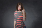 Zdjęcie "Rozwaga, nieśmiały, koncepcja myślenia. Kobieta skrzyżowane ramiona " może być wykorzystywane do celów osobistych i komercyjnych zgodnie z warunkami zakupionej licencji Royalty-free. Obraz jest dostępny do pobrania w jakości wysokiej rozdzielczości do 5760x3840.