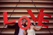 Zdjęcie "Narzeczeni gospodarstwa Just Married znaki" może być wykorzystywane do celów osobistych i komercyjnych zgodnie z warunkami zakupionej licencji Royalty-free. Obraz jest dostępny do pobrania w jakości wysokiej rozdzielczości do 5760x3840.