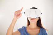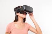 kobieta oglądając choć urządzenie wirtualnej rzeczywistości