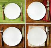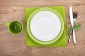 pusty płyta ze sztućcami i serwetka na drewniane tła