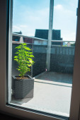 Strona główna Hodowla marihuany Konopie Hodowla konopi Liście na balkonie w jasne popołudnie światło słoneczne