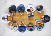 Zdjęcie "Grupa ludzi biznesu za pomocą urządzeń cyfrowych" może być wykorzystywane do celów osobistych i komercyjnych zgodnie z warunkami zakupionej licencji Royalty-free. Obraz jest dostępny do pobrania w jakości wysokiej rozdzielczości do 5760x3840.
