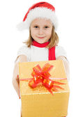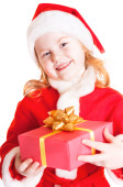 szczęśliwe dziecko Boże Narodzenie prezenty w polach na białym tle.
