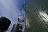 przemysłowej rurociągów i zbiorników przeciw błękitne niebo