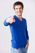Uśmiechający się młody człowiek utrzymanie rękami skrzyżowanymi
