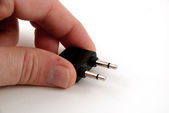 Ręka trzyma klucz zabezpieczeń na białym tle na białym tle