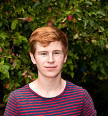 portret atrakcyjnych szczęśliwy uśmiechający się chłopca w ogrodzie