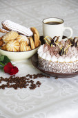 Zdjęcie "Tort tiramisu na pięknie deocorated tabeli" może być wykorzystywane do celów osobistych i komercyjnych zgodnie z warunkami zakupionej licencji Royalty-free. Obraz jest dostępny do pobrania w jakości wysokiej rozdzielczości do 5760x3840.